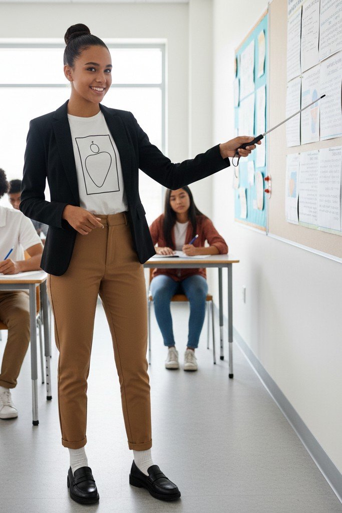 Why It Works: It is a joyful, upbeat outfit. The Hawaiian shirt is a statement piece that shows off your fun side. It is perfect for a spirit day or the last week of school.