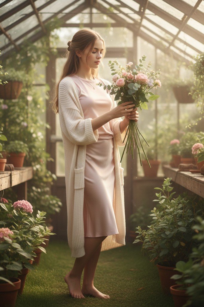 A skirt set that you can mix and match. A silky slip skirt in a pastel or neutral is elegant. Pair it with a simple, fitted t shirt or tank top. A long, open cardigan in a matching or contrasting color ties the look together and adds warmth.