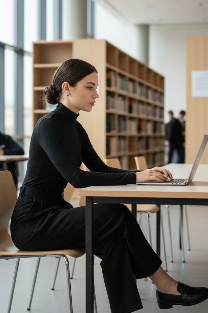 Pro Tip: Tuck the sweater in neatly. Choose a skirt in a deep, rich color like emerald or burgundy. Keep your hair and makeup simple and sleek.