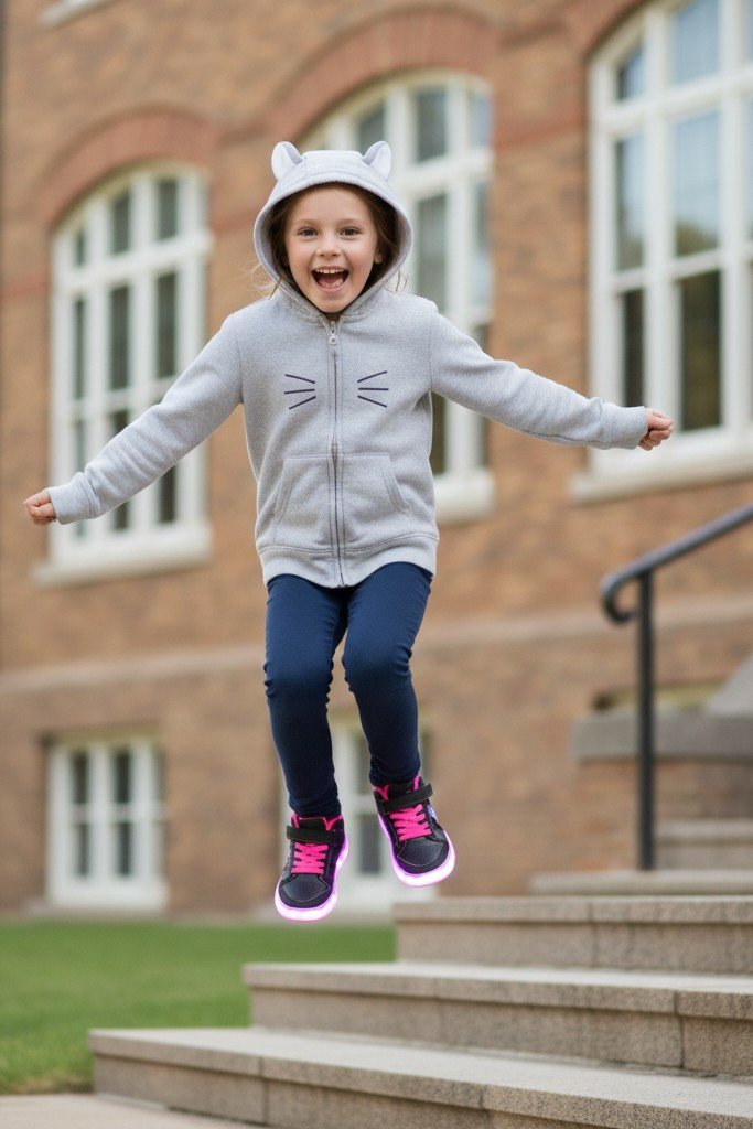 3. Cat Ears Hoodie + Jeggings + Light Up Sneakers