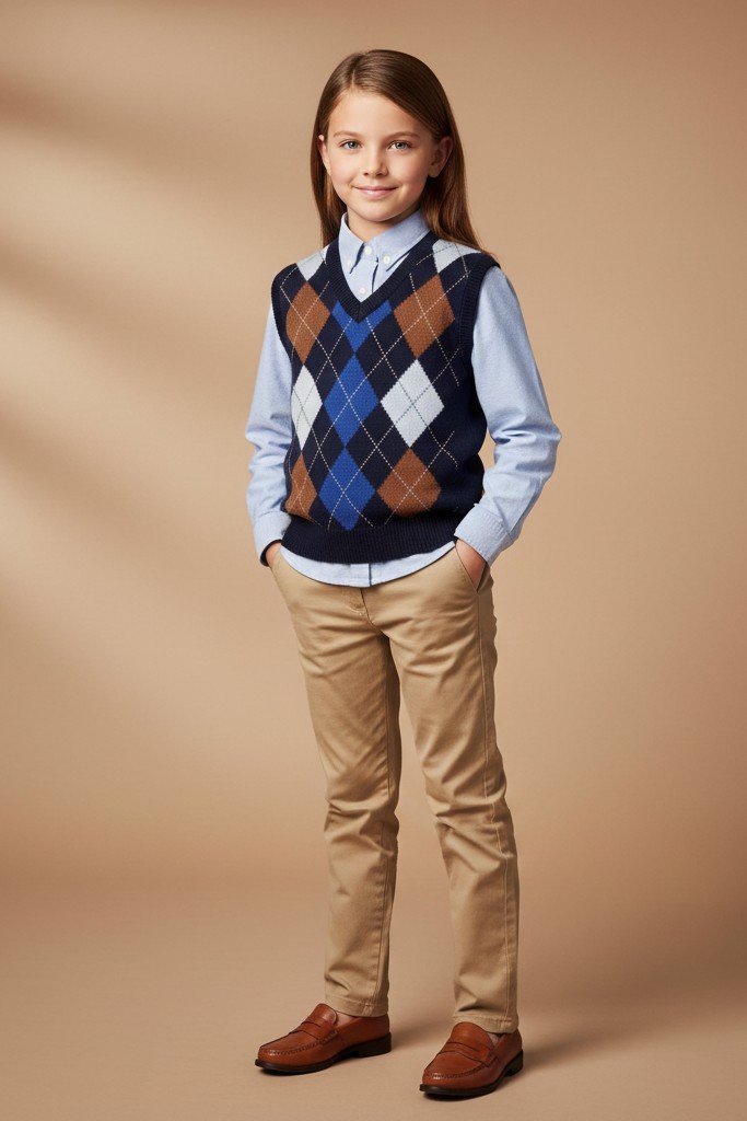Why It Works: The vest adds a touch of individuality and style. The outfit looks thoughtful and is very photographable. It works for both boys and girls.