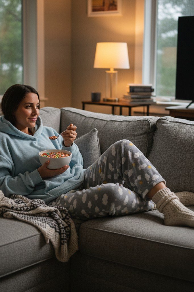 This outfit is for true relaxation. It is perfect for a lazy Sunday, a sick day, or a marathon of your favorite show. Pure comfort.