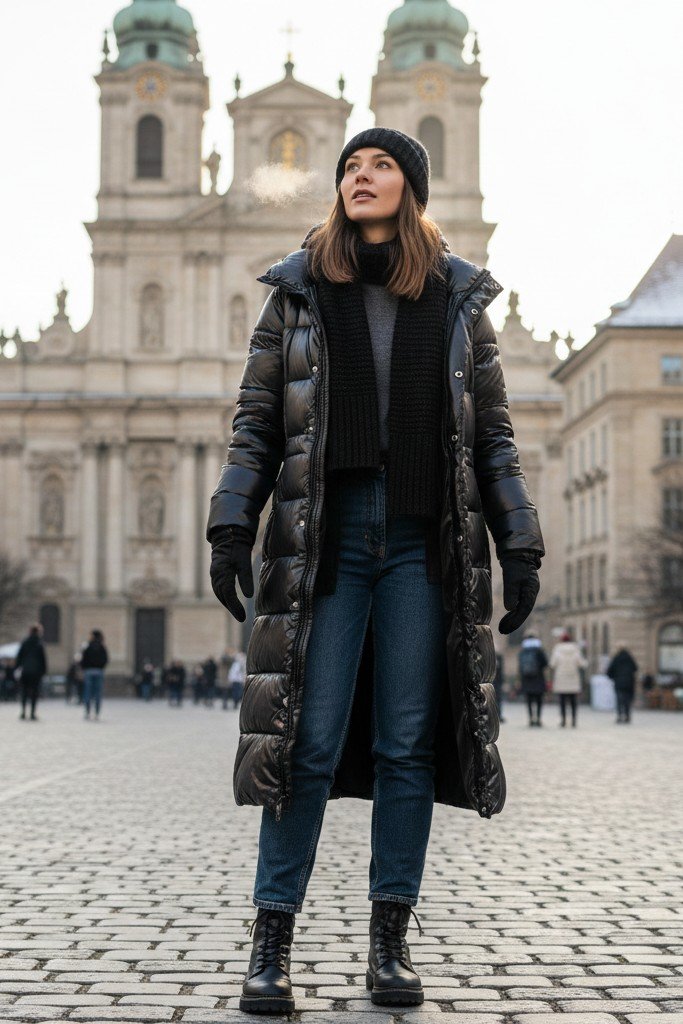 Pro Tip: Choose a puffer coat that packs down small for travel. A crossbody bag worn under the coat keeps your belongings secure and warm.