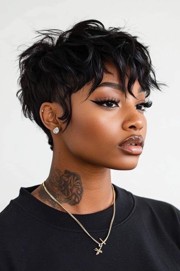 Why It Works: This is the ultimate wash and go bixie for natural hair. The messy texture hides uneven curls and makes day two and three hair look intentional. It works beautifully for type 3b to 4b hair. You can style it in under five minutes.