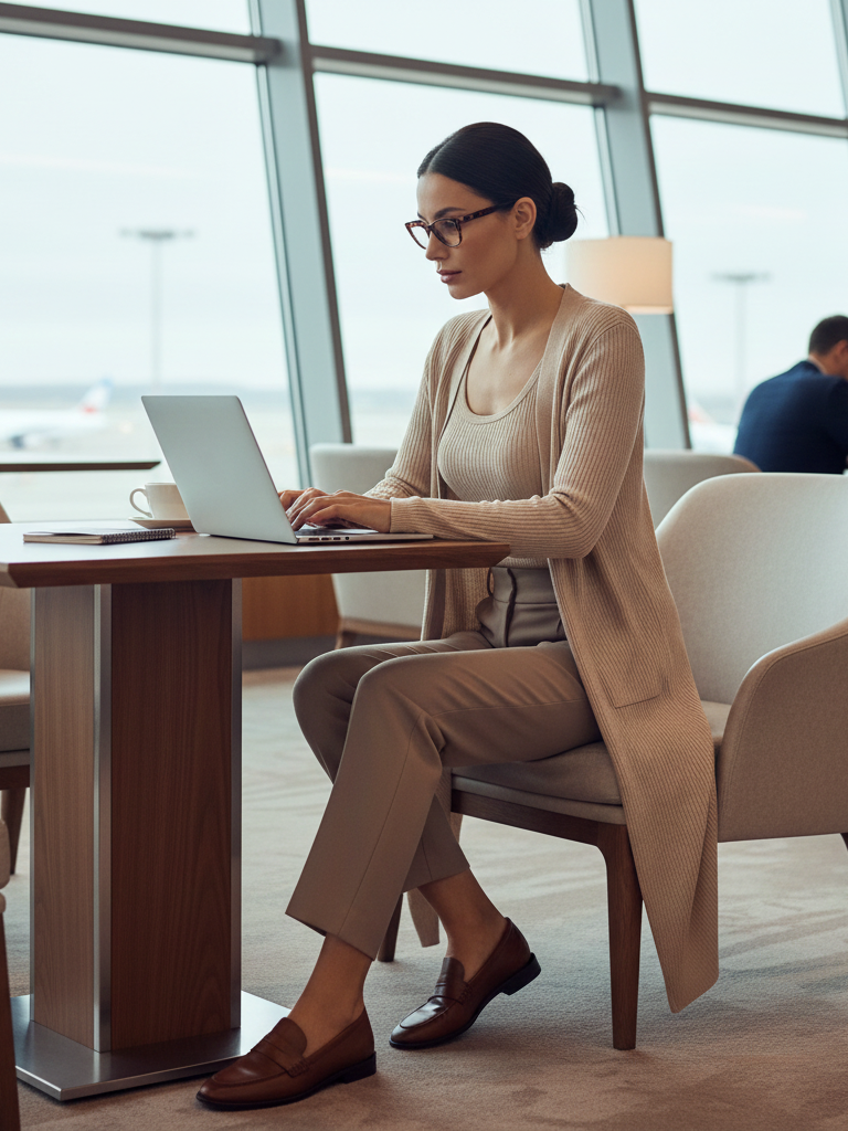 Why It Works: A jumpsuit is a complete outfit in one piece, no matching needed. It’s comfortable for sitting for hours. The dark color hides wrinkles. You look put-together the moment you arrive.