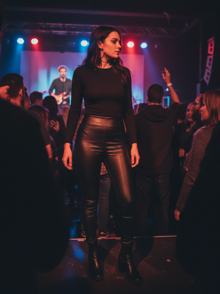 Why It Works: Leather pants instantly make an outfit feel sexy and cool. The black bodysuit keeps the look streamlined and chic. It’s comfortable, edgy, and perfect for a concert or night out.