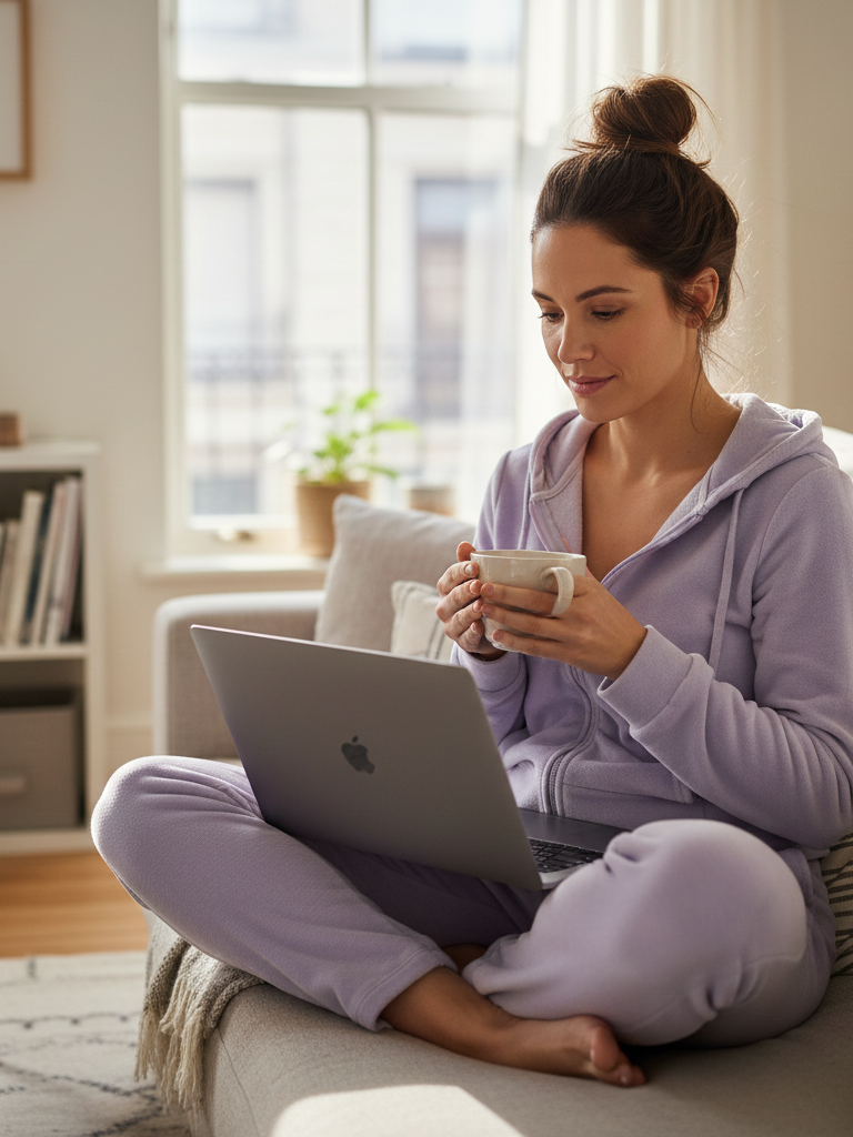 Why It Works: You look intentional and stylish, even though you’re in loungewear. It’s the ultimate in comfort but feels like a real outfit. Perfect for video calls where you need to look presentable from the waist up.