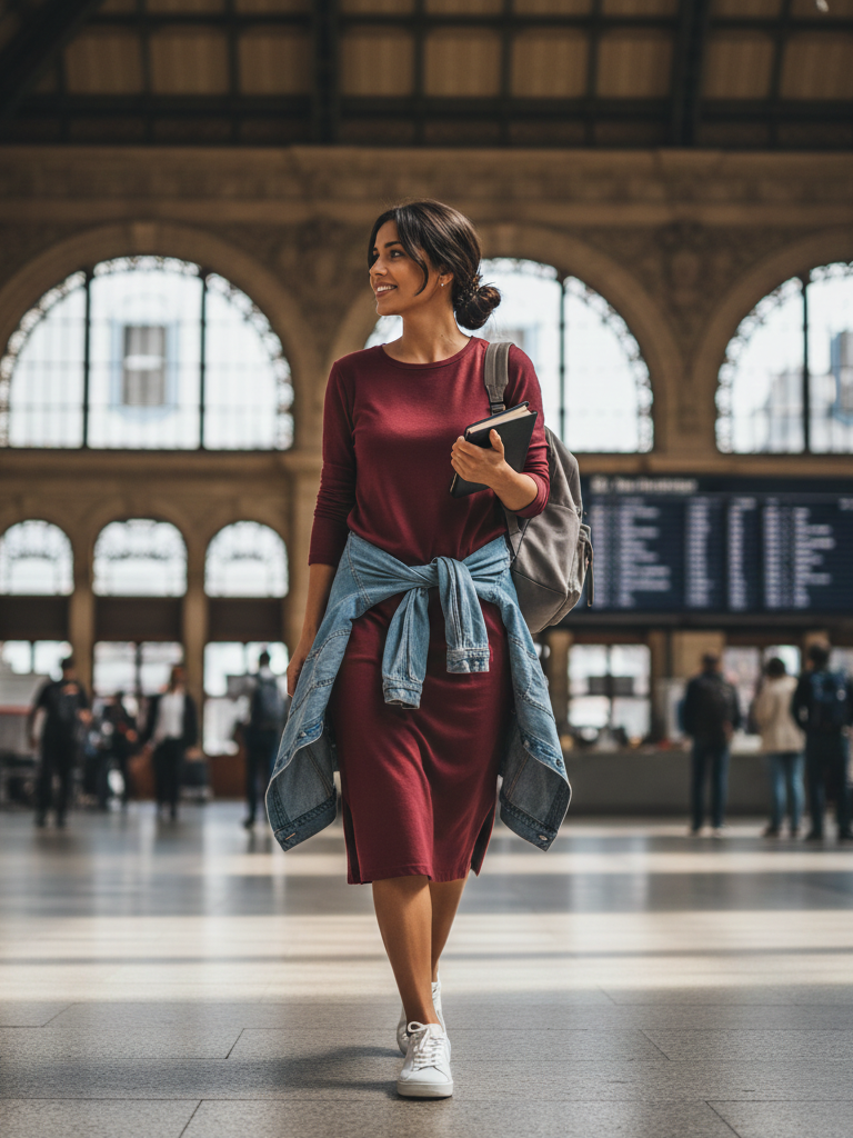 Pro Tip: Choose a dress with sleeves or bring a layer, as planes and trains are often cold. A dress with pockets is a major bonus for holding your phone and passport.