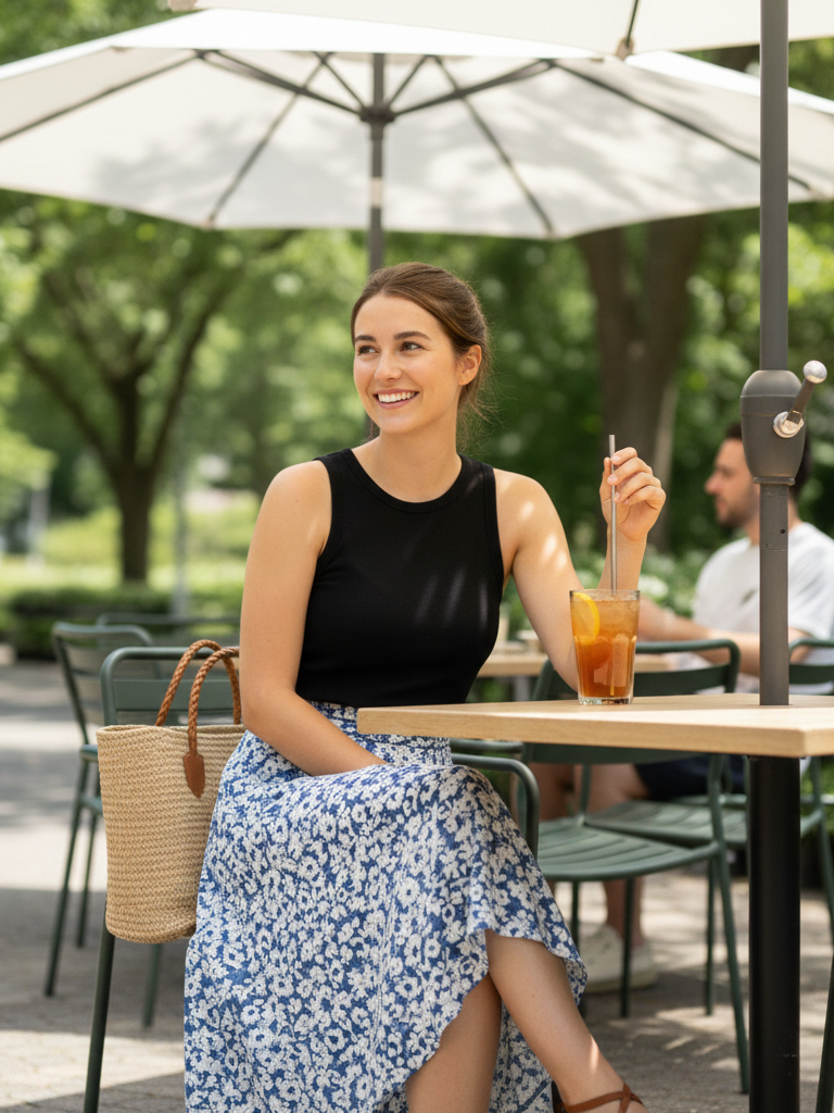 Why It Works: This outfit is feminine, breezy, and perfect for a warmer day. The skirt is fun and stylish, while the simple tank keeps it grounded. It feels special but is still very easy to wear.