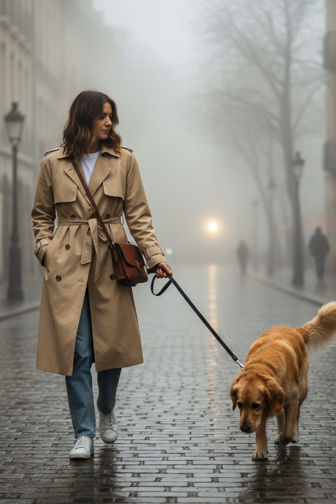 Why It Works: The trench coat is a fall staple that provides just enough warmth for a chilly day. It instantly makes any simple outfit look sophisticated and intentional.