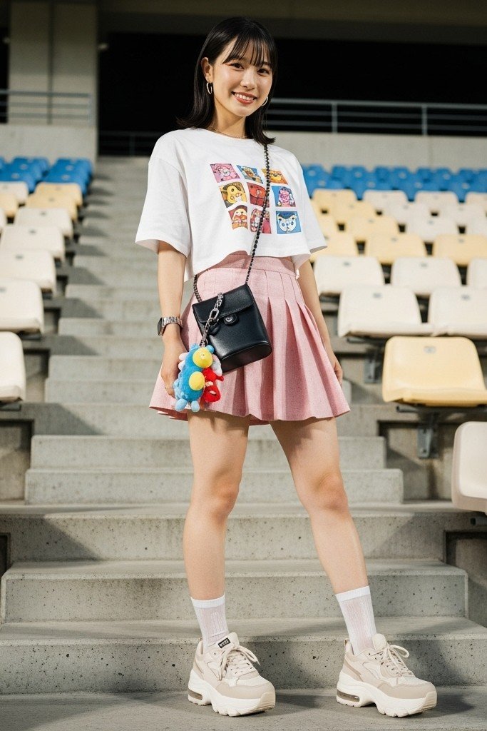 Why It Works: This outfit is perfect for a pop concert or a casual show. The crop top and high-waisted skirt are a perfect pair.