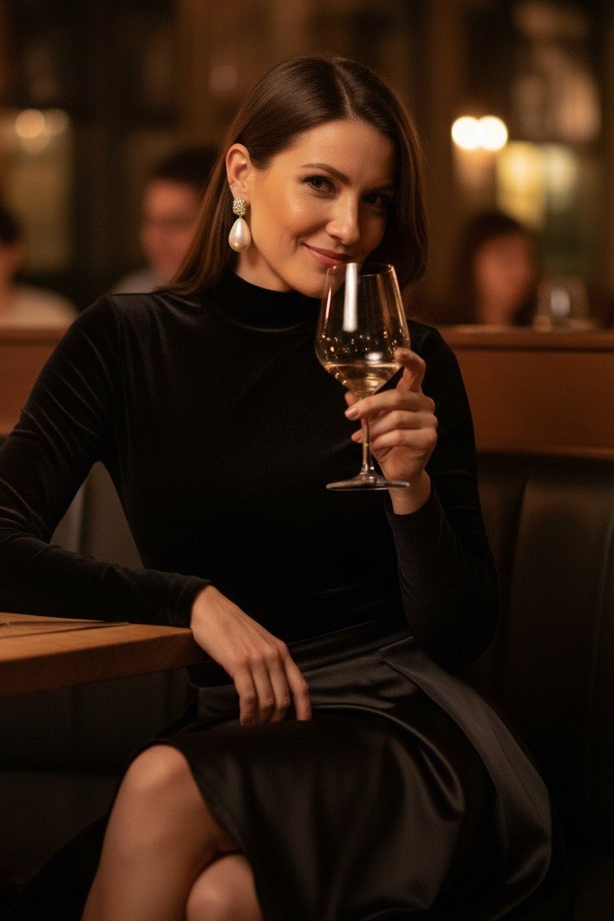 Time to turn up the romance and drama. These outfits are for evenings out, dinner dates, or special occasions. They embrace bolder details, luxe fabrics, and statement accessories.