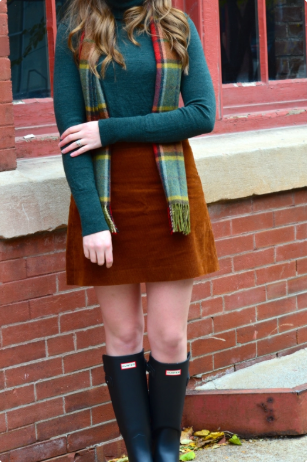 Corduroy screams fall! Pair a corduroy skirt with a turtleneck and tights for a cute school outfit.
