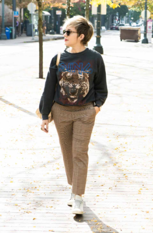 Tie-dye is still in! A tie-dye hoodie with black jeans and white sneakers is an easy go-to look.