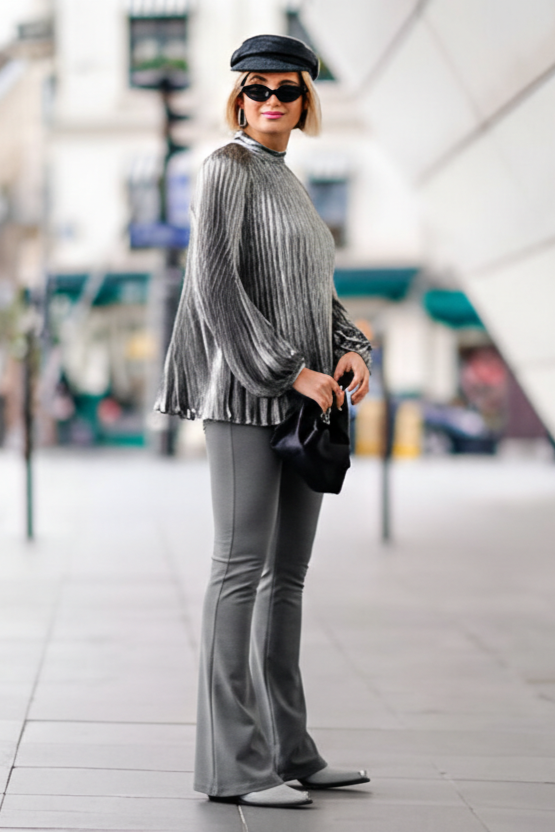 You will learn how to pair them with everything from leather jackets to tailored blazers. Get ready to rock your gray flares with confidence.
