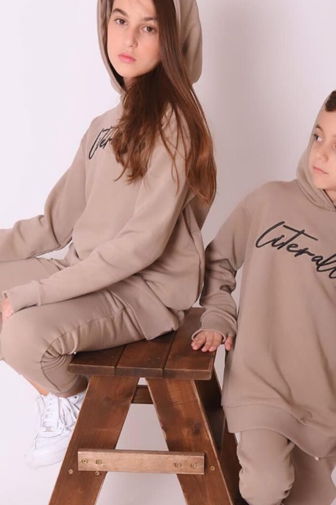 Description: Simplicity is key in this effortlessly cute outfit. A comfortable beige hoodie and pants set is the foundation. It’s paired with clean white sneakers, creating a look that is put together in seconds but perfect for an active day.