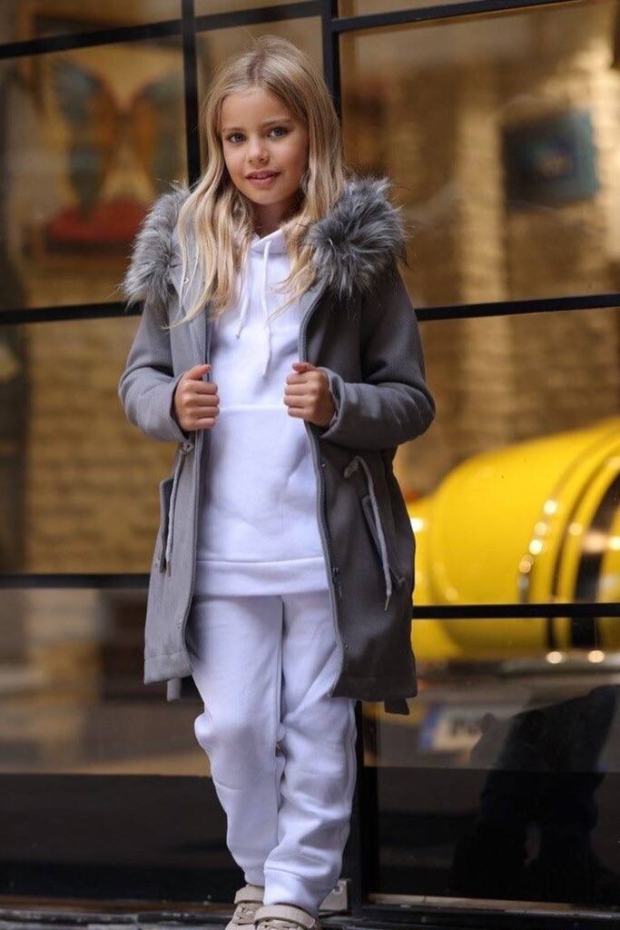 Why It Works: Grey is a practical color that hides dirt well, making this a great outfit for school or daily errands. The hoodie adds a comfortable, relatable kid-element to the more structured coat.