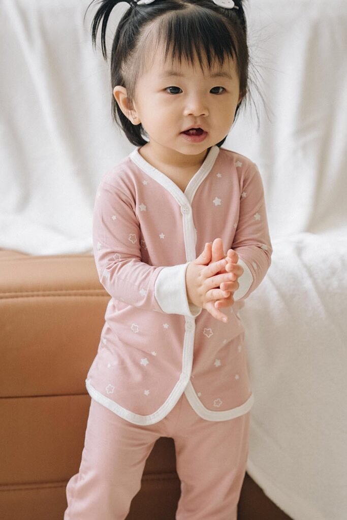 Description: This is a classic and charming pajama set for cozy nights. The pink set features cute white star prints and clean white trim details, creating a sweet and festive sleepwear look that any child would love.