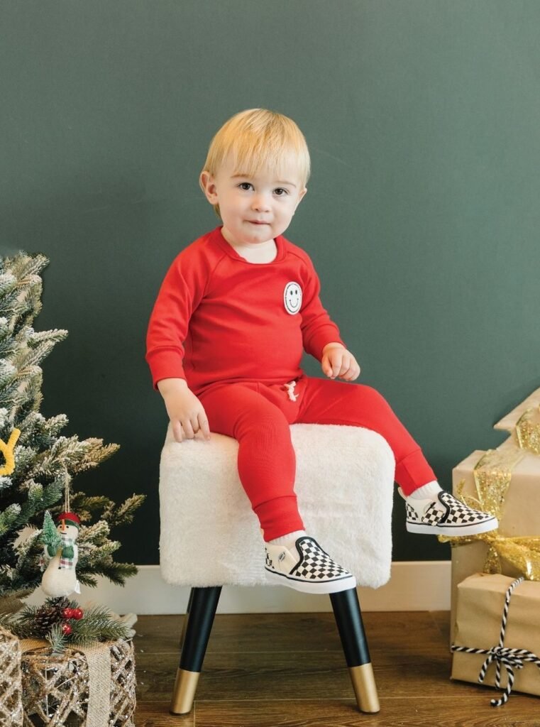Why It Works: Matching pajama sets are a holiday tradition for many families. They are warm, comfortable, and make for adorable morning photos.