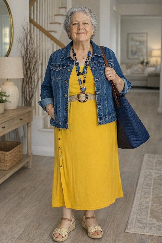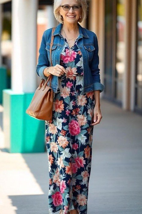 Pro Tip: Choose a maxi dress with a defined waist or add a thin belt. This prevents the dress from looking like a nightgown. Wear the denim jacket open for a relaxed shape.