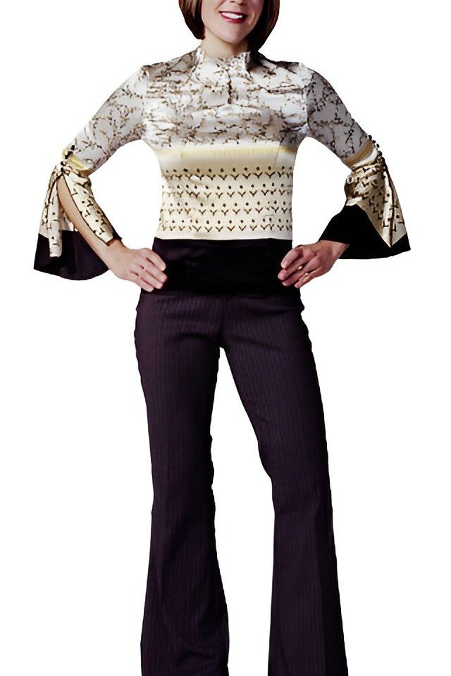 Pro Tip: The bell-sleeve blouse is the focal point, so keep accessories minimal. Tuck the blouse into the high-waisted trousers to define your waist. Add a pair of simple pearl earrings to complement the elegant vibe.