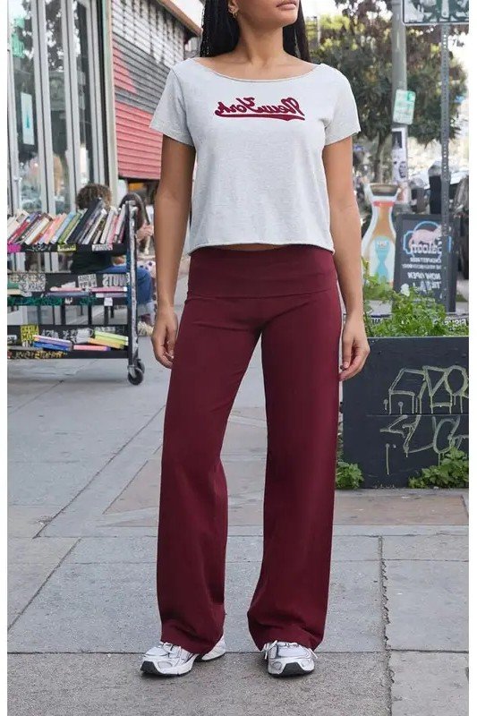 Pricilla pants are a style of wide-leg or flare pants characterized by a fold-over waistband. They are known for being incredibly comfortable while still looking polished and stylish. The fold-over waistband provides a flattering, adjustable fit, and the flare silhouette creates a long, lean line.
