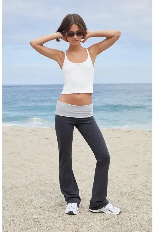 10. White Spaghetti Strap Tank Top + Dark Grey Fold-over Flare Pants + White Sneakers