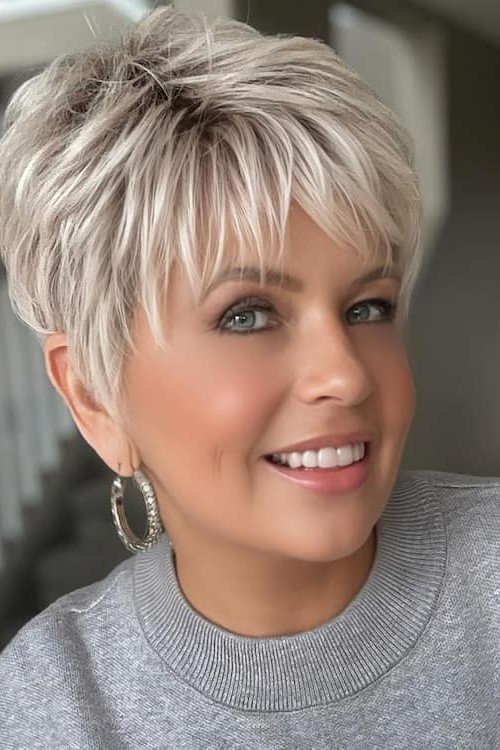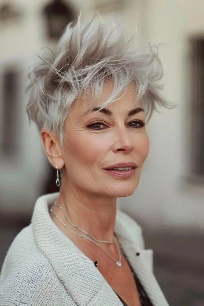 Why It Works: The spiky texture adds height and makes fine hair look thicker. The textured silver color is modern and low maintenance. This cut works on straight or slightly wavy hair. It is perfect for women who want a bold, edgy look that takes minutes to style.
