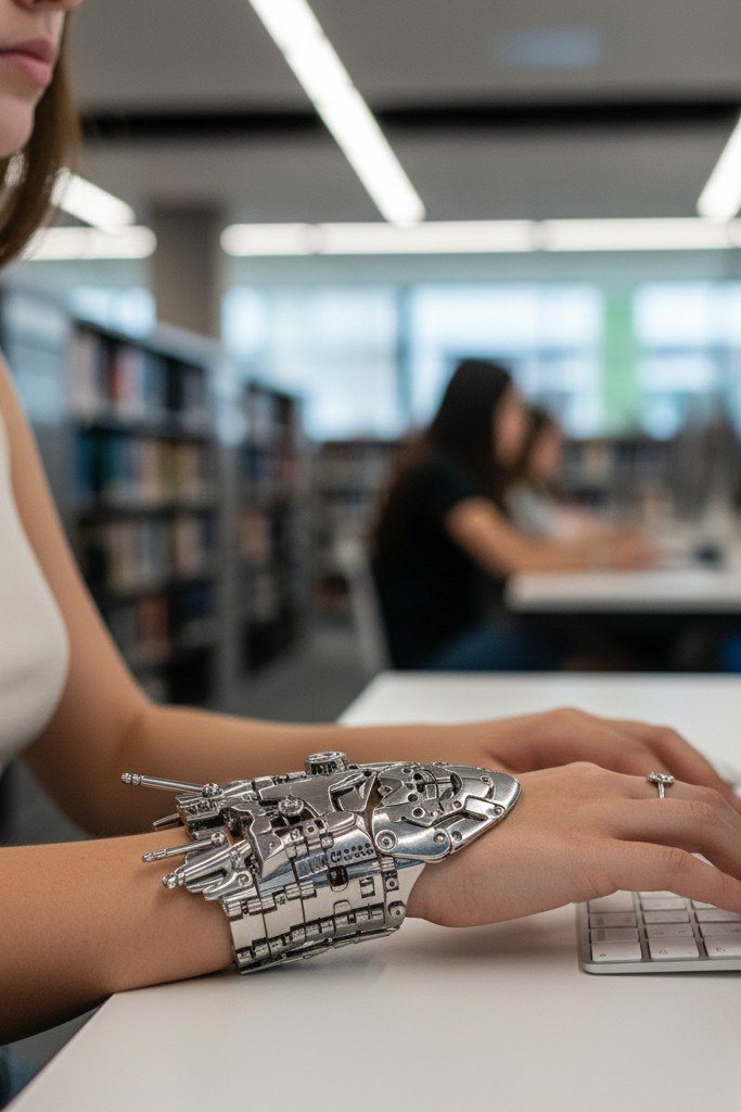The future is in the subtle details. A very basic outfit, like a cream tank top and black trousers, is the blank slate. The focus is on jewelry that has a robotic or tech inspired design. Think interlocking metal cuffs, earrings with tiny moving parts, or a necklace with a circuit board pattern.