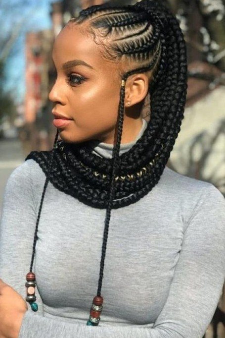 17. Zig-Zag Patterned Cornrows with Long Braided Ends
