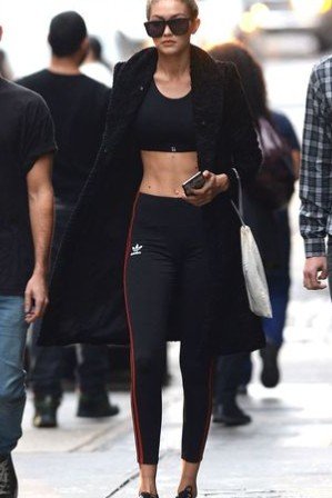 This is athleisure at its most sophisticated. A simple black workout base becomes a high fashion outfit with the addition of a classic tan trench coat. The white sneakers ensure it still feels sporty and cool.
