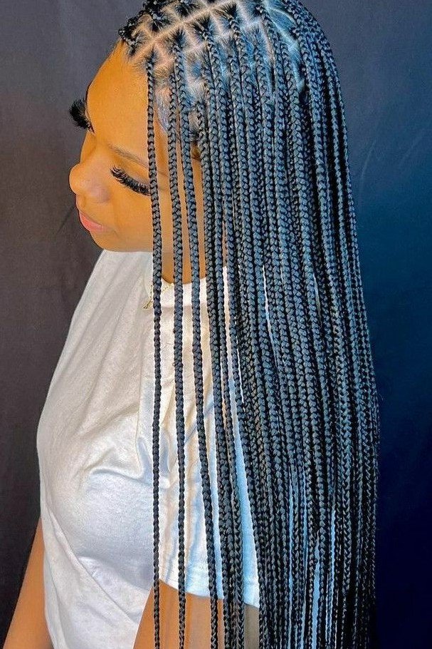 10. Waist-Length Box Braids with Sculpted Side Edges